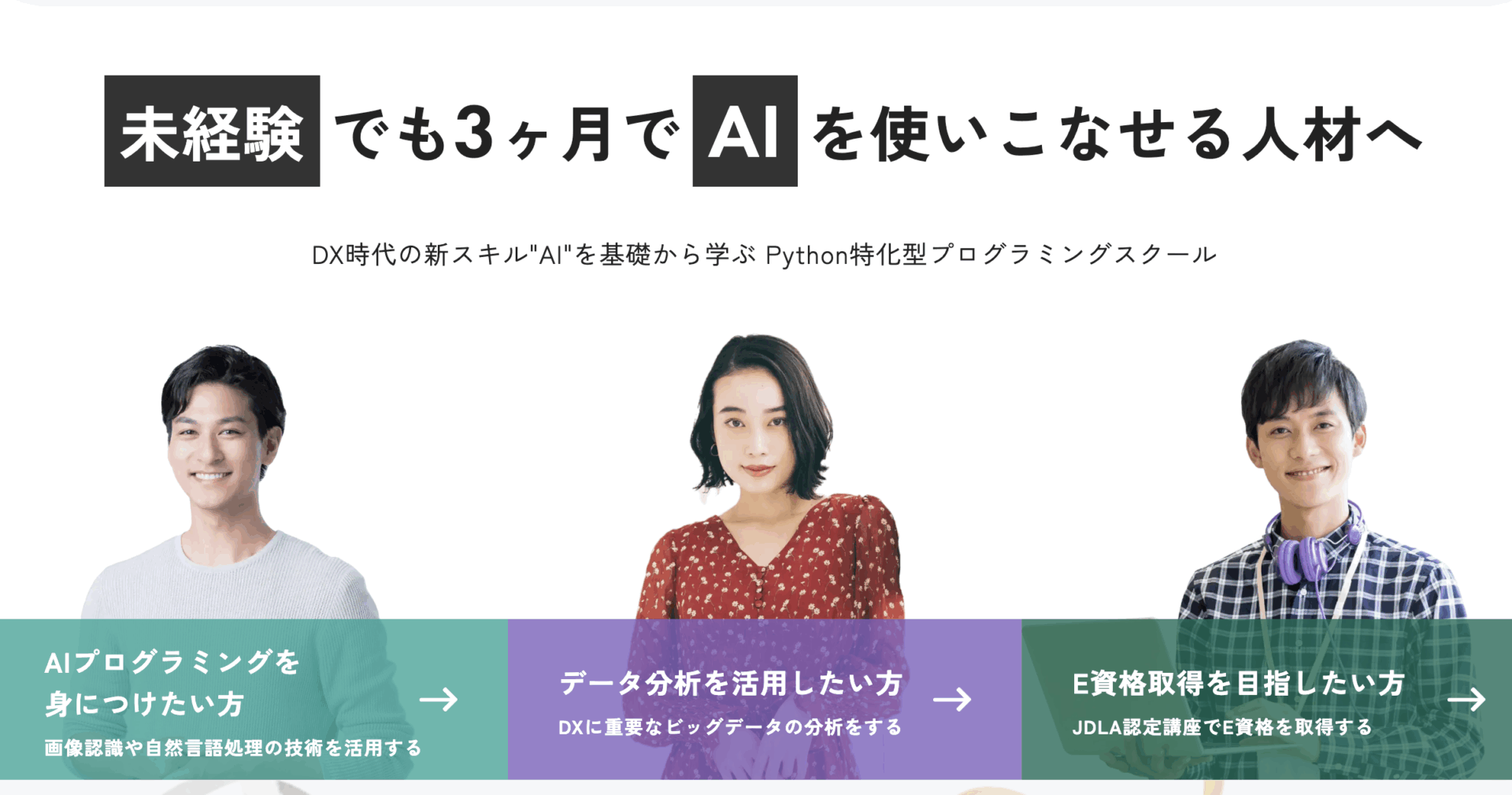 学べる講座内容 | AIプログラミング基礎(Pythonなど) AIを活用したWebアプリケーション開発 データ分析と機械学習 AI副業・案件獲得サポート 転職支援(履歴書・職務経歴書の添削、模擬面接など) |